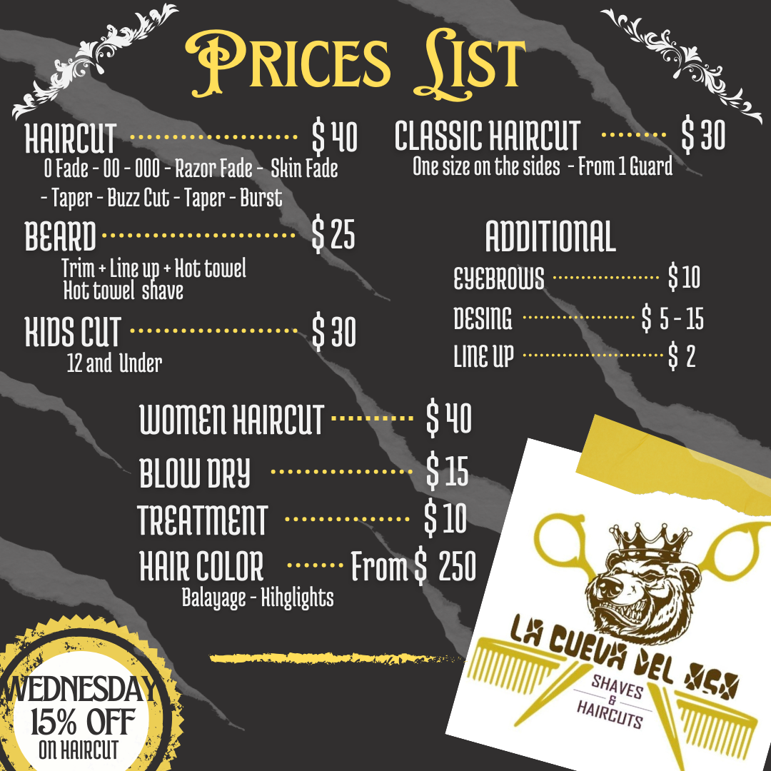 La Cueva Del Oso Barber Shop and Salon in Denver. We take pride in offering a moderm and comfortable environmet where you”ll feel right at home while enjoying high-quality service and a haircut that makes a difference.